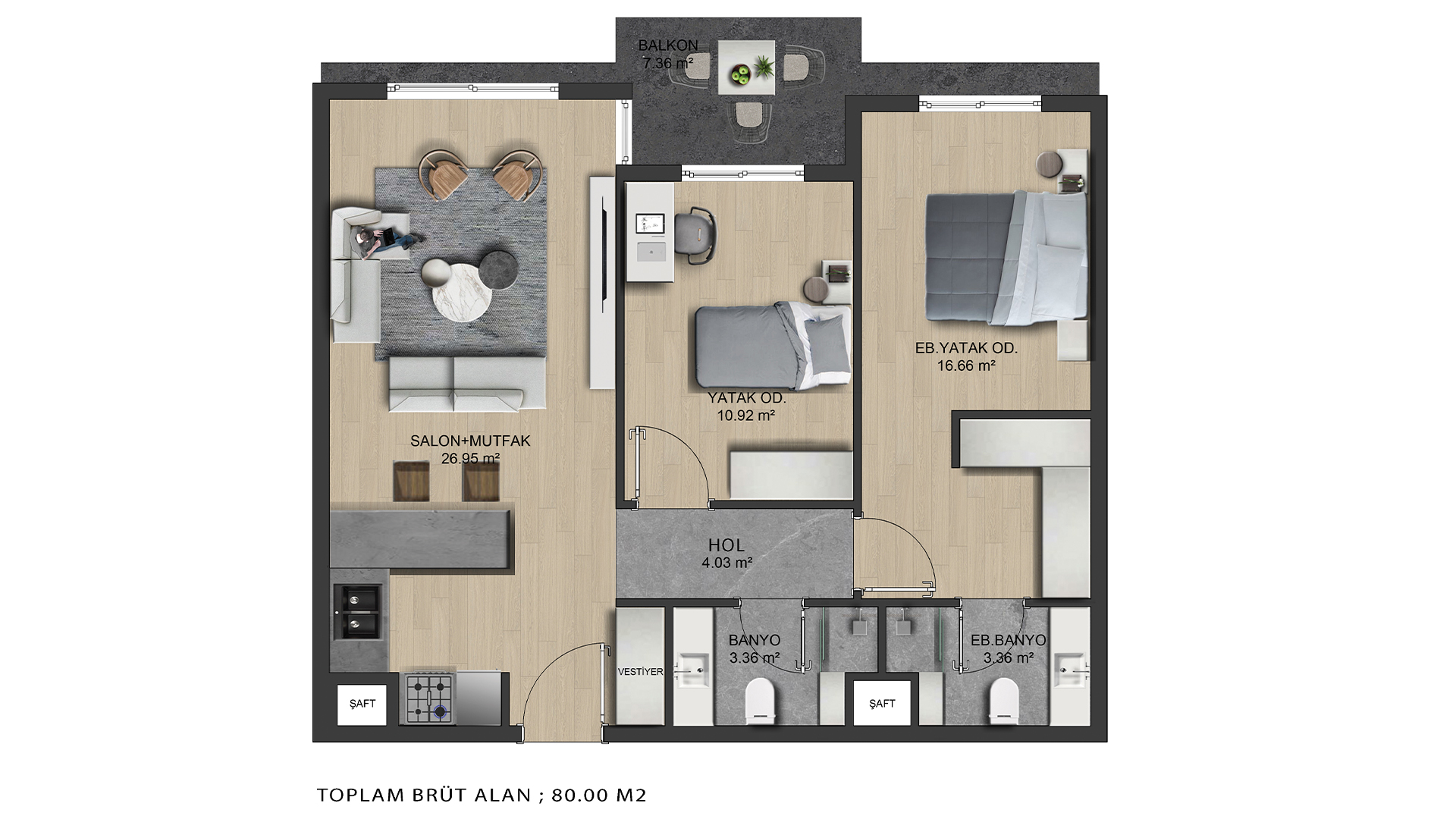 Toplamda 2,300 bağımsız bölümün yer alacağı Tona Alacaatlı, çeşitli konut dağılımlarıyla farklı ihtiyaçlara cevap vermektedir. 1+1, 2+1, 3+1 ve 4+1 daire seçenekleri sunan projede, her türlü yaşam tarzına uygun konutlar bulunmaktadır.